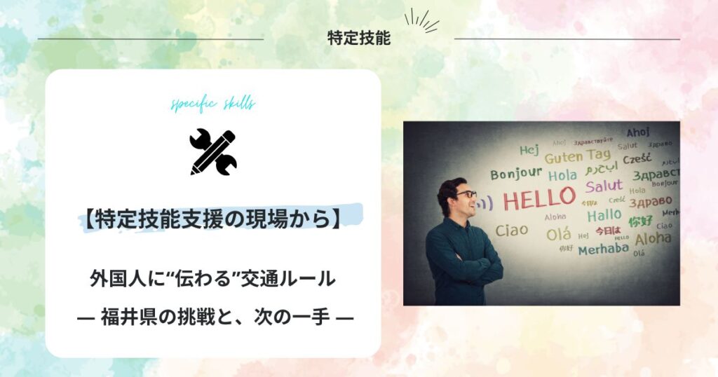 - 【特定技能支援の現場から】外国人に“伝わる”交通ルール ― 福井県の挑戦と、次の一手 ―