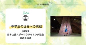 皆スマホ片手に列を作っていました。Webチェックインすれば短い列に並べるのに……と思いつつ見ると、前にJAPANのユニフォームを着たスポーツクライミングチームがいました。インド・プネーの大会に参加予定とのこと。大会での活躍を伝えました